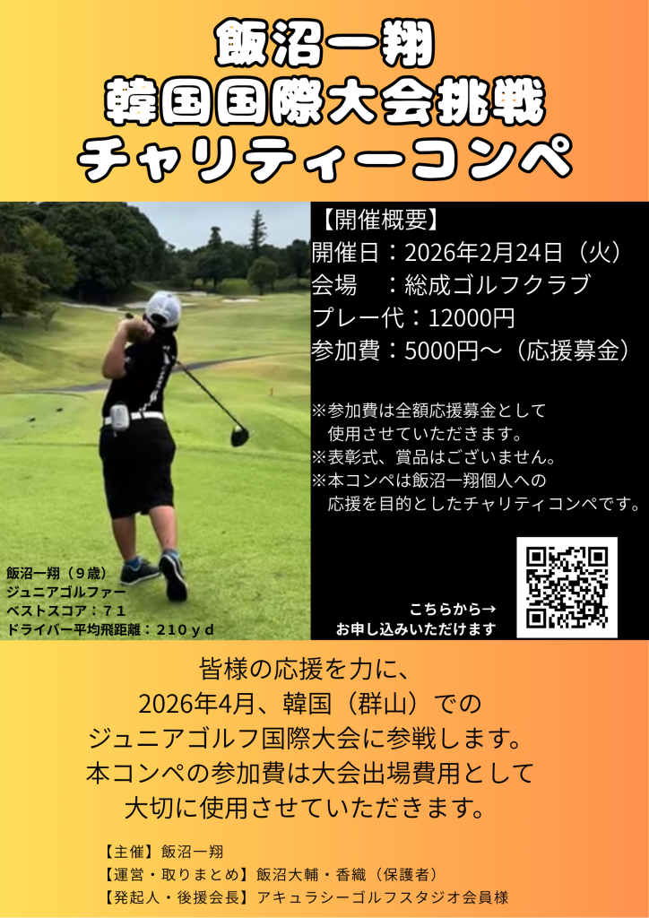 ※今回のコンペはアキュラシーゴルフスタジオではなく飯沼一翔主催、個人への応援を目的としたチャリティコンペです。